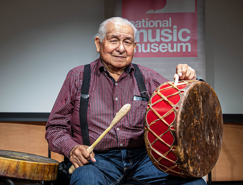 The National Music Museum and the Institute of American Indian Studies at the University of South Dakota will celebrate Native American Heritage Month during Discovery Saturday on November 1 with a morning of storytelling, music, and dance featuring Lakota elder Jerome Kills Small (Sisoka Luta) and the Sungmanitu Oyate drum group and dancers.